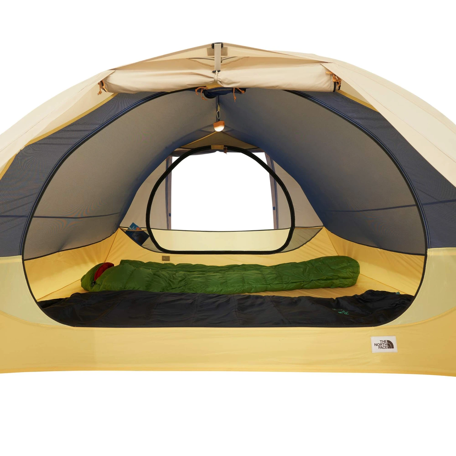 - Die Innenzelttür kann geöffnet in einer Deckentasche verstaut werden